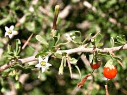 نبات معمر على شكل شجيرة ارتفاعها يصل الى متر لها ساق خشبية متنوعة الاوراق صغيرة وبسيطة وعلى جانبها اشواك الازهار احادية جرسية الشكل بيضاء تميل للزرقة الثمرة لبية عنبية لونها اخضر وعند النضج تتحول الى اللون الاحمر حلوة وتوكل بداخلها بذور كثيرة تكثر الشجرة في الاماكن الساحلية الرملية وتتركز في صحارى السعودية والكويت وسيناء وغور لاردن يقال ان سيدنا موسى علية السلام انس نارها ونار العوسج حارة وقليلة الدخان , غذاء مفضل للحباري الاسم العلمي Lycium barbarum